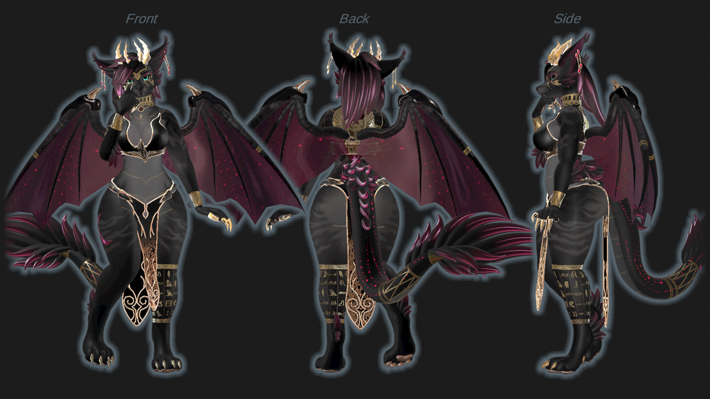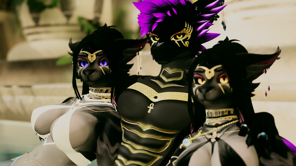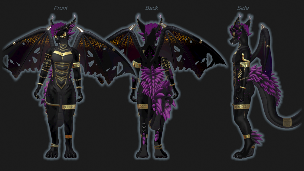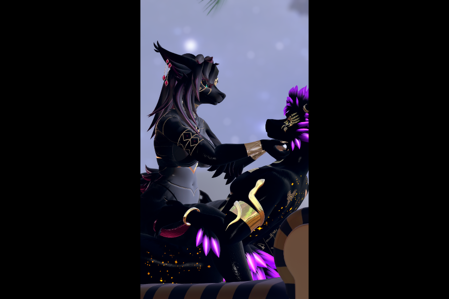 Inspired by Anubis and Bastet, I bring you the Egyptian gods in the form of a couple's texture for your favorite dragons! The wings have a scrolling emission of hieroglyphs, as well as audiolink set up. There is also a texture for the aquatic versions of Aster and Azalea. Your purchase contains simple drag and drop materials to make it easy!